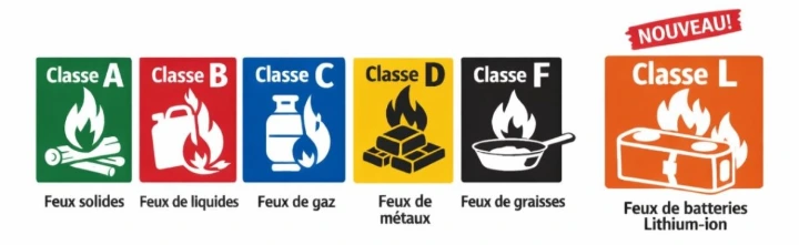 Publiée le 21 janvier 2026, la nouvelle version de la norme ISO 3941 introduit officiellement la classe L, dédiée aux incendies impliquant des batteries lithium-ion. Il s'agit de la troisième révision de cette norme internationale sur la classification des feux, aux côtés des classes A (solides), B (liquides), C (gaz), D (métaux) et F (huiles de cuisson).
